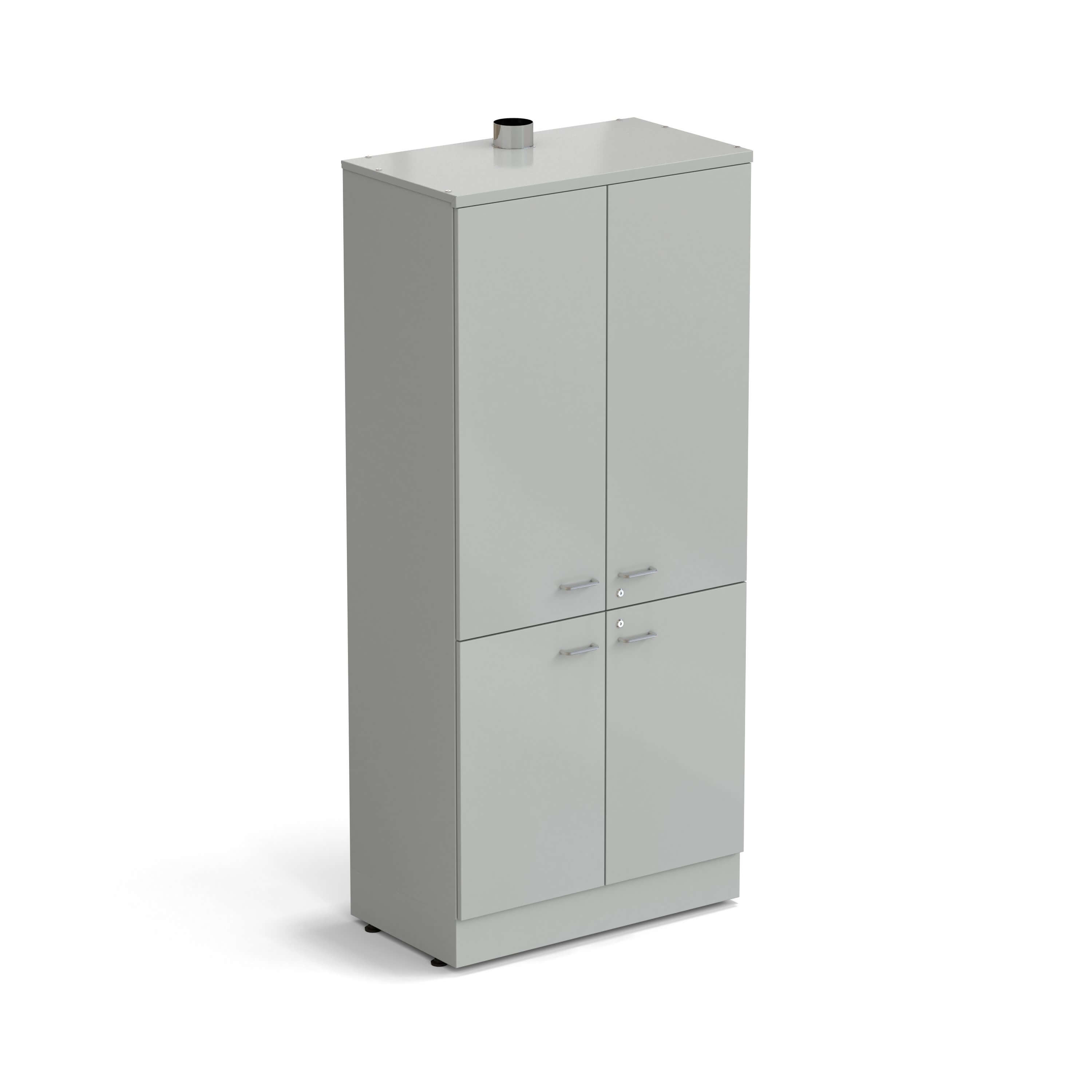 • Шкаф оборудован фланцем диаметром 100 мм для подключения к системе вытяжной вентиляции и имеет металлические дверцы, которые запираются на ключ;