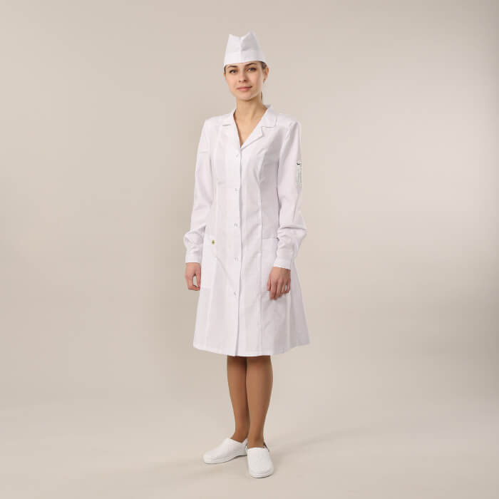 Халаты рекомендуется использовать в комплекте с головным убором и брюками из соответствующей ткани.